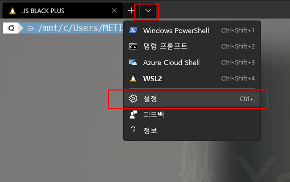 먼저 윈도우 터미널에서 설정파일로 들어갑니다.